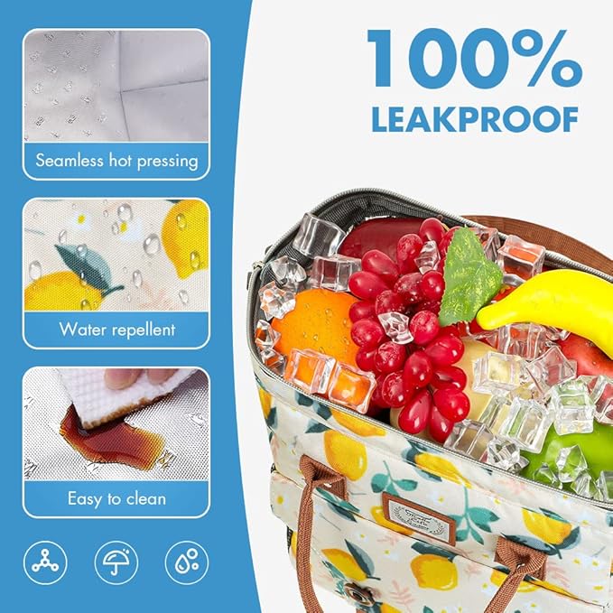 - Lightweight and Leakproof Lunch Bag: Weighting 360g, this lunch cooler bag is made of water resistant fabric for easy cleaning while heat-welded seams to guard against leaks.