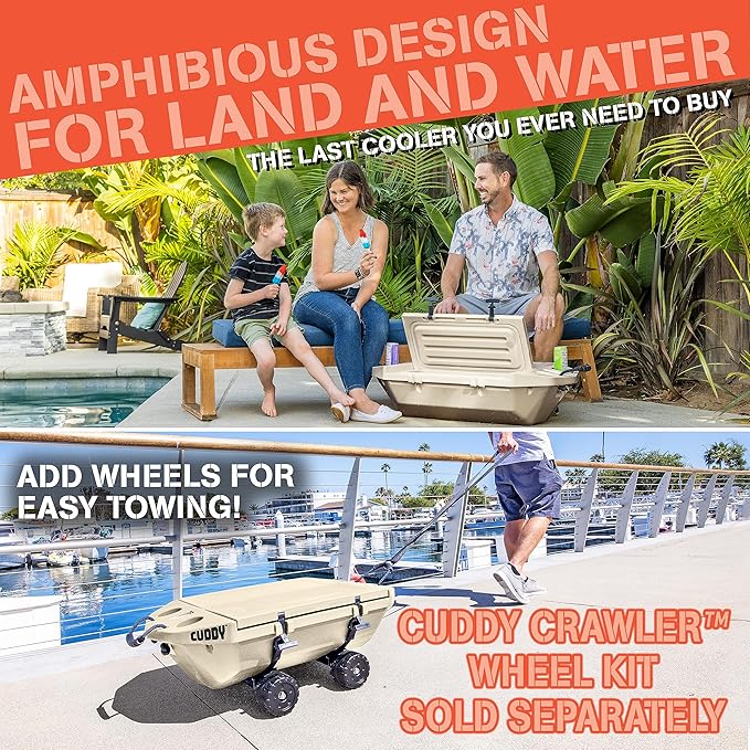 - AMPHIBIOUS FLOATING COOLER: Float, tow or anchor, the CUDDY is a floating cooler and dry storage vessel that also serves as a traditional cooler on land; Always have your drinks or gear within reach while on the water
