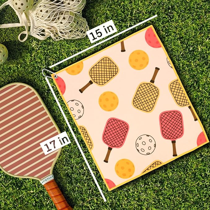 Millie Rose Pickleball Towels in Fashionable Prints - Cute 15x17 inch Microfiber & Cotton Athletic Towels with Carabiner Clip - Pickleball Accessories, Pickleball Gifts (OPA!)