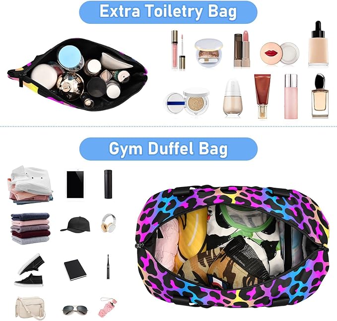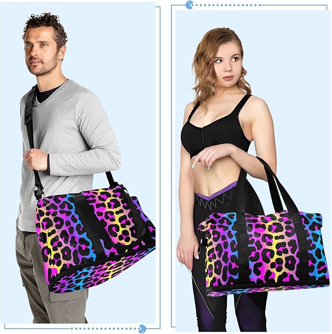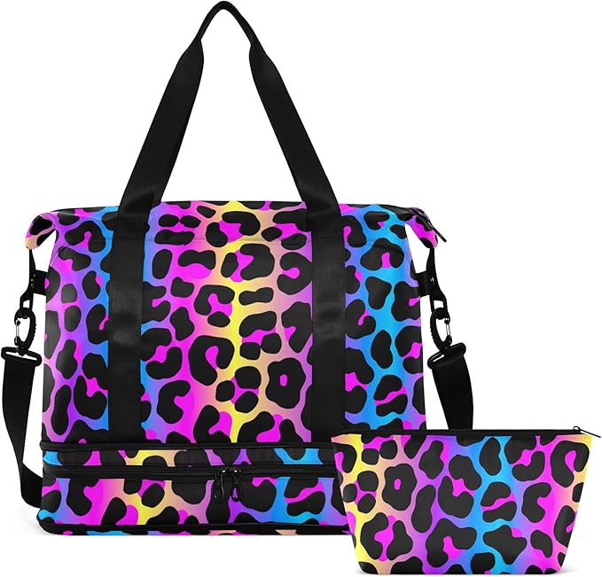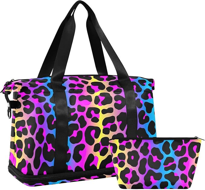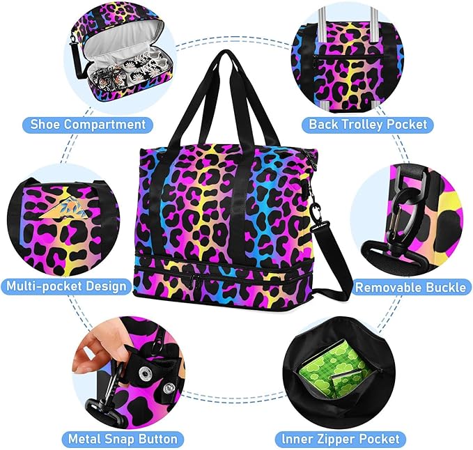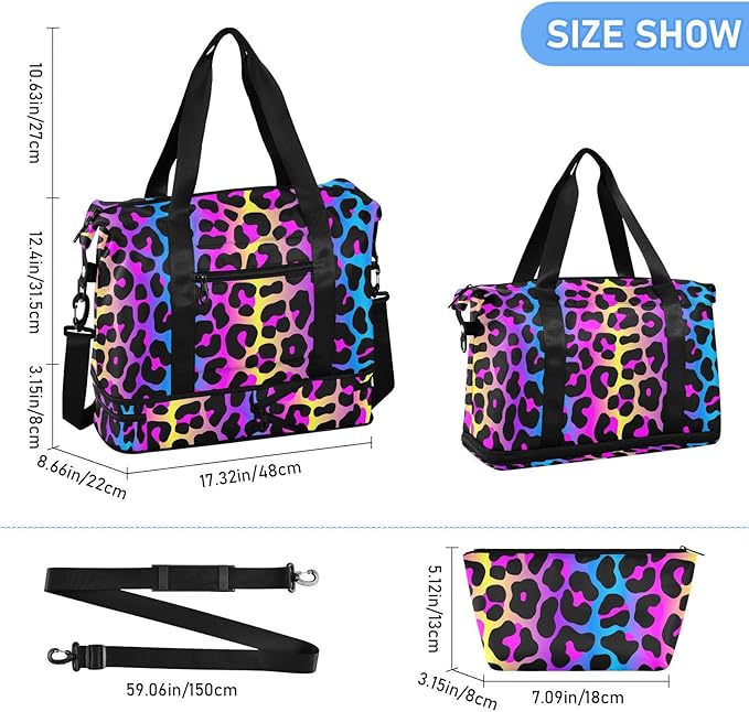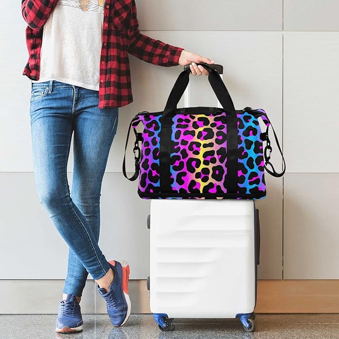 senya Weekender Bag for Women, Leopard Print Cheetah Neon Gradient Gym Sports Duffle Travel Tote with Toiletry Shoes Compartment Dry/Wet Separation Swim Bag