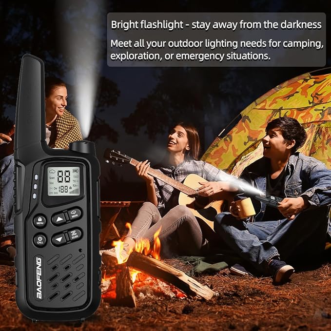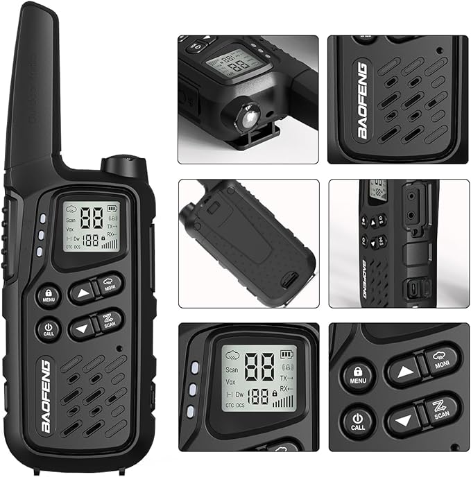 - More Function: Lightweight and easy to carry,with Channel Scan Function,Hands-Free Operation (VOX) ,10 Selectable Call Alerts,Call Alert,Roger Beep Tone,Keypad Lock,Emergency Strobe Light,Battery/Power Saver,Backlit LCD Display,Low Battery Audible Alert And TOT (Time out timer) etc.