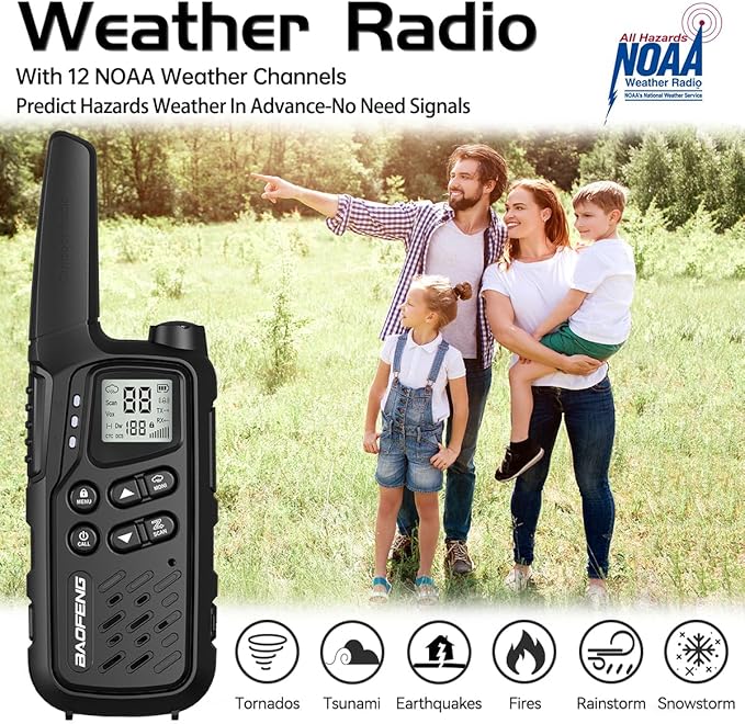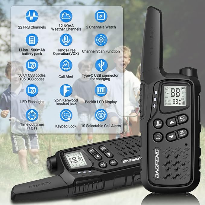 Walkie Talkies, Walkie Talkies for Adults Long Range MP25 Family Walkie Talkie with NOAA Weather Alerts Flashlight and Type-C Charging Cable for Camping Gear Hiking Trip(Black,Include Battery)
