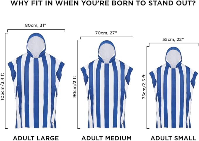 • MULTIPLE SIZES - The Adult Poncho comes available in three different sizes: Small (85x65cm/33.5x25.6"), Medium (90x70cm/35.5x27.6"), and Large (105x80cm/41.3x31.5")