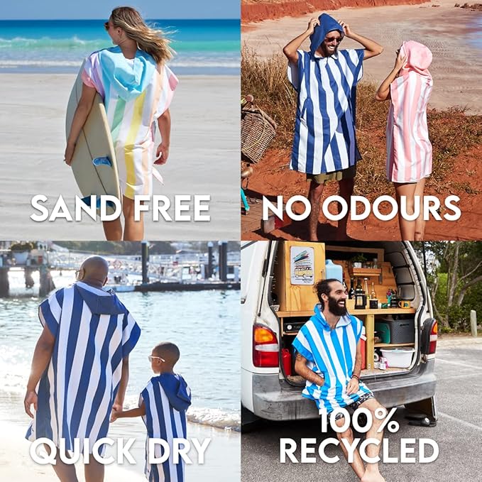 • 100% RECYCLED MATERIAL - Our beach ponchos are made from 100% recycled materials comprised of a mix of 83% polyester and 17% polyamide. Not only are they extremely soft with a pleasant feel, but they are eco-friendly too