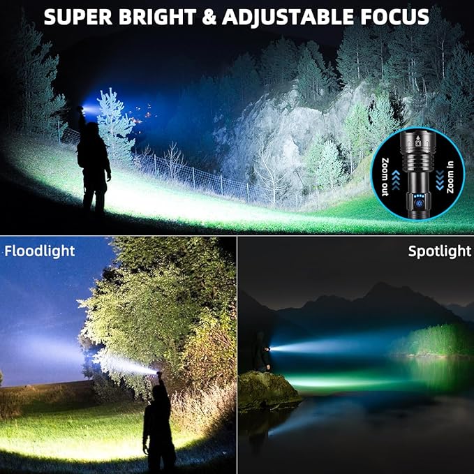 Flashlights High Lumens Rechargeable, 990000LM Super Bright Flashlight, Adjustable Tactical Flashlight, 5Mode Flash Light High Powered, Waterproof LED Flashlight for Camping, Hiking, Home, Emergencies