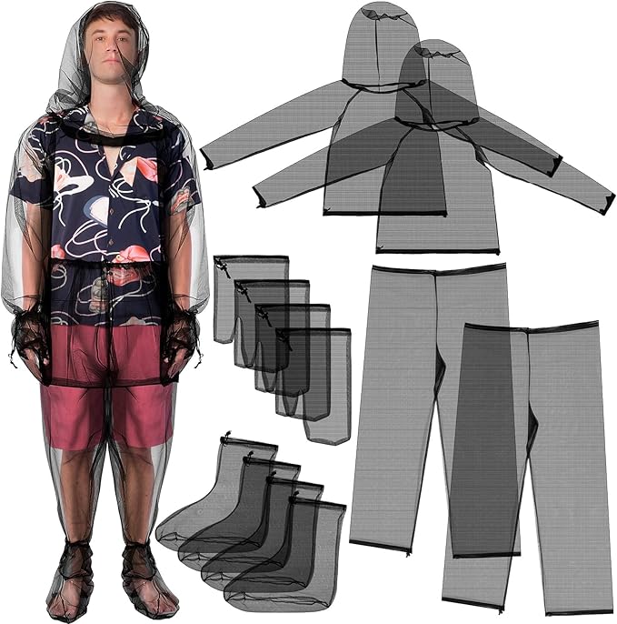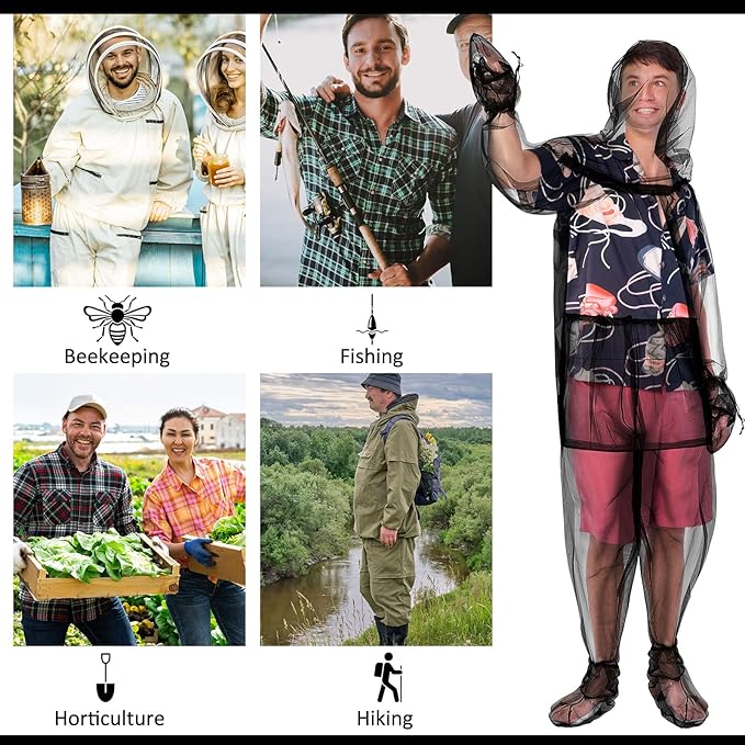- What You Will Receive: the package contains 2 sets of fine mesh full body clothing, namely 2 piece of net jackets with hood, 2 pieces of net pants, 2 pairs of mittens and 2 pairs of socks, providing full protection during camping, hiking, gardening, fishing and so on