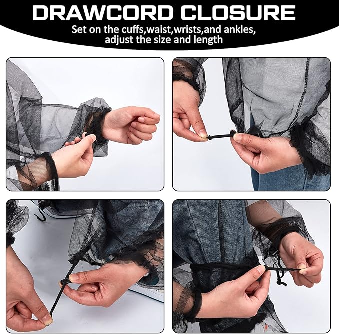 - Zipper Hood and Adjustable Drawstring: our fine mesh full body clothing comes in one size to fit most people, designed with adjustable drawstring to different wrist sizes and ankle sizes, and the hood mask is designed with zipper closure, you can open the zipper closure to enjoy drinks and food without taking off the hood