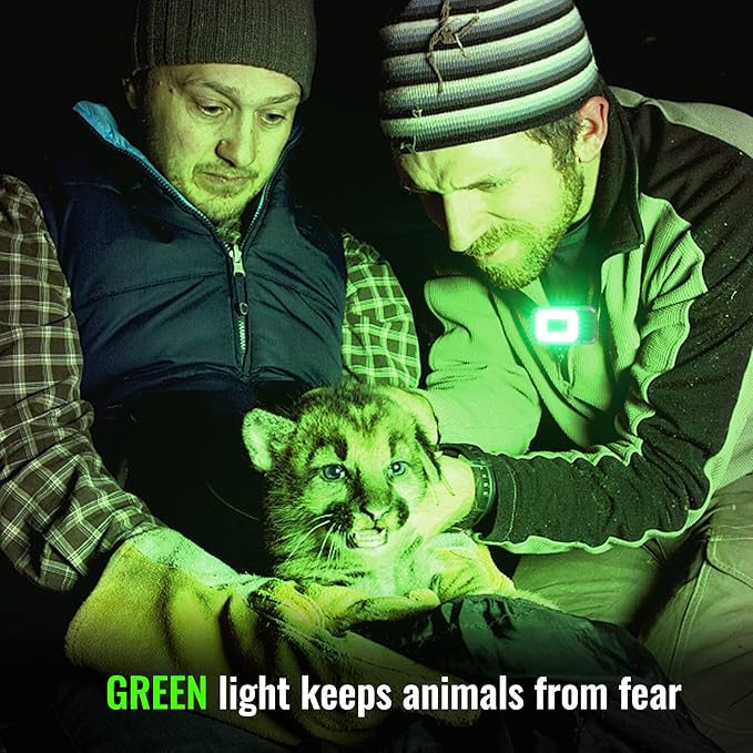 - 【Friendly Red&Green Light Design for All】The human eye is most sensitive to the green range of light, and animals are not spooked by green light.It can be a great tool for fishing & hunting. This Red night flashlight is also specially designed for observers to find the animals in the dark.The red light also provides extra safety for emergency conditions when cycling or jogging in foggy mornings and evenings.
