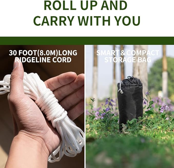 - Super Space: Its giant size offers plenty of room when used with single or double hammocks, two people, or one person laying diagonally. It’s spacious, comfortable and can be used with all camping hammocks