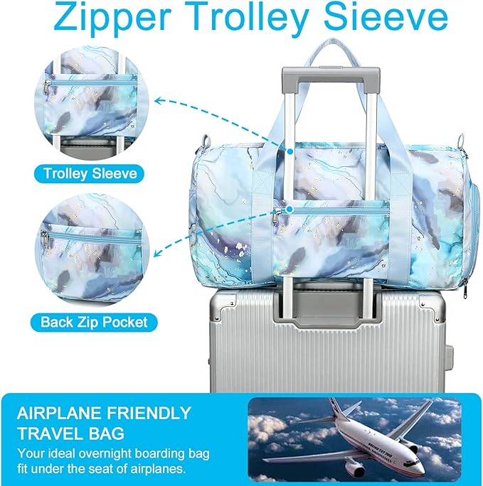 - Back side with rolling sleeve allows you to slide it over rolling suitcase, and the zippered pocket can hold earphones, mobile phones, charging cables, etc perfect used as a weekend travel bag taking with all your travel essentials.