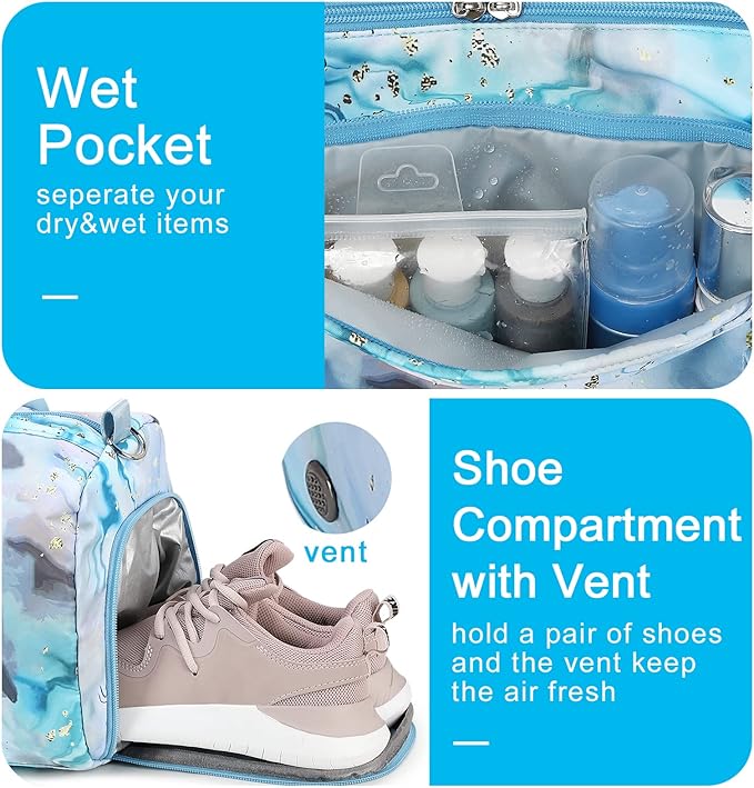 Sport Gym Duffle Travel Bag for Men Women Duffel with Shoe Compartment, Wet Pocket