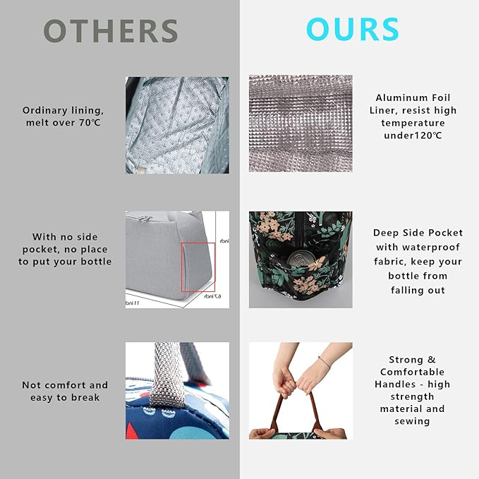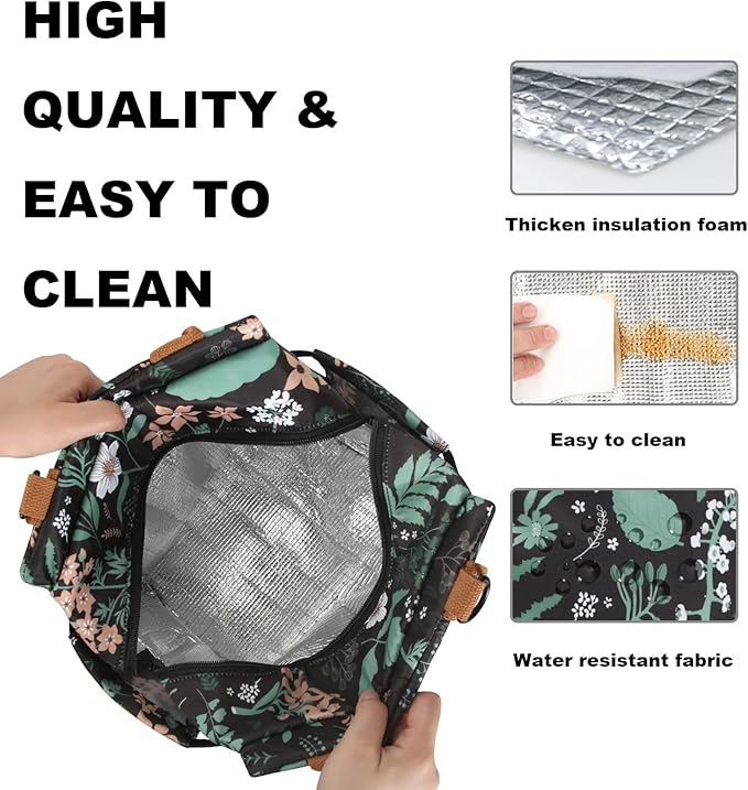 - ❤KEEP FRESH & WARM: This insulated lunch bag is made of water-resistant leakproof oxford cloth, easy clean food safe aluminum foil inner lining, and padded with thicken EPE foam will keep your food cold or thermal for 4-6 hours. Tips: Putting ice packs into the bag could keep cold for longer time.