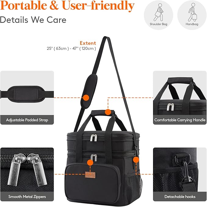 - Multi-use: This lunch box for women has a padded shoulder strap and top handle for easy carrying. Perfect for packing food for 1-2 people for work, picnics, camping, and the beach. Moms can use it as a diaper bag to keep milk and medicines or as a casual tote bag. Suitable for both men and women. THIS ITEM IS NOT INTENDED FOR USE BY CHILDREN 12 AND UNDER.