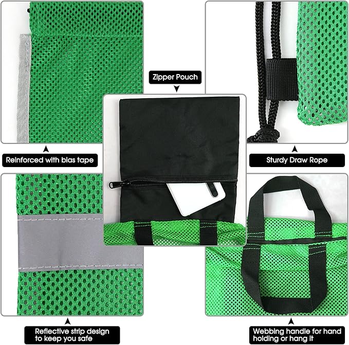 • Inner Zipper Pocket & Reflective Strip: Our mesh drawstring bag has a zipper pocket. The pocket (6.7'' x 7") of our drawstring backpack can put your value items, like phones, keys, wallets, etc, and add the utility rate of space. Our string backpack bag extra adds a reflective strip, which enhances the high visibility in dark or dusk. Greatly reduce your chance of being hit.