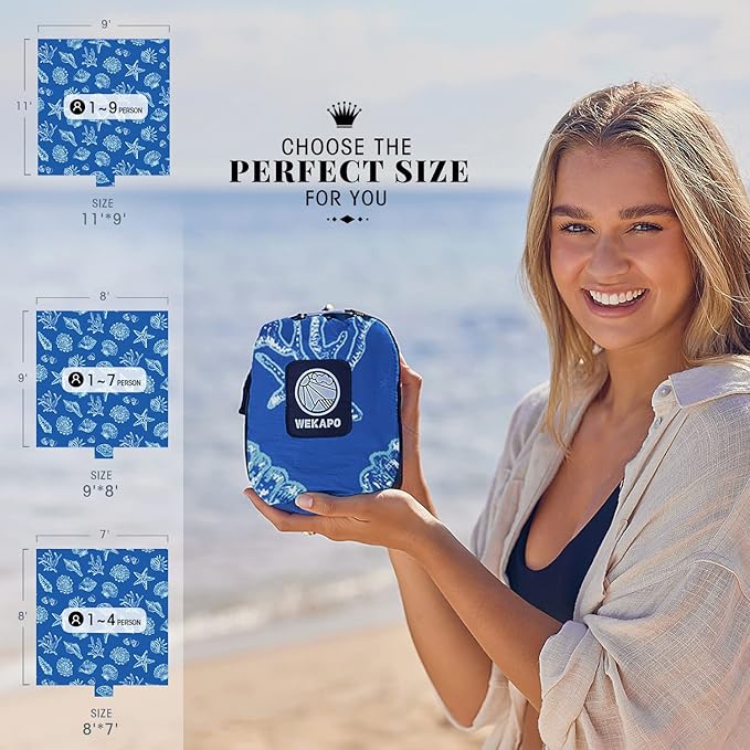 WEKAPO Beach Blanket Waterproof Sandproof Oversized, Extra Large Beach Mat Sand Free, Lightweight & Compact Sand Free Mat with 6 Stakes & 4 Corner Pockets