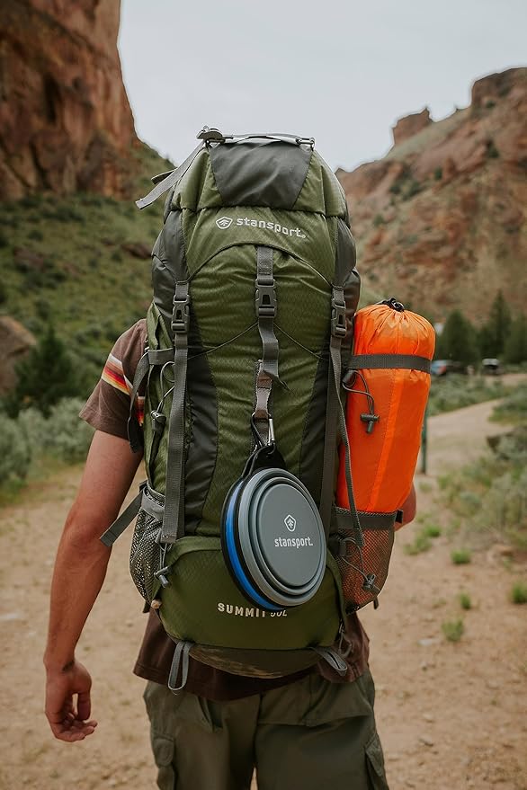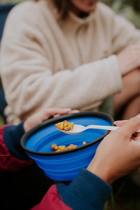 Stansport Collapsible Silicon Travel Bowls - 2 Pack, Grey and Blue, Large