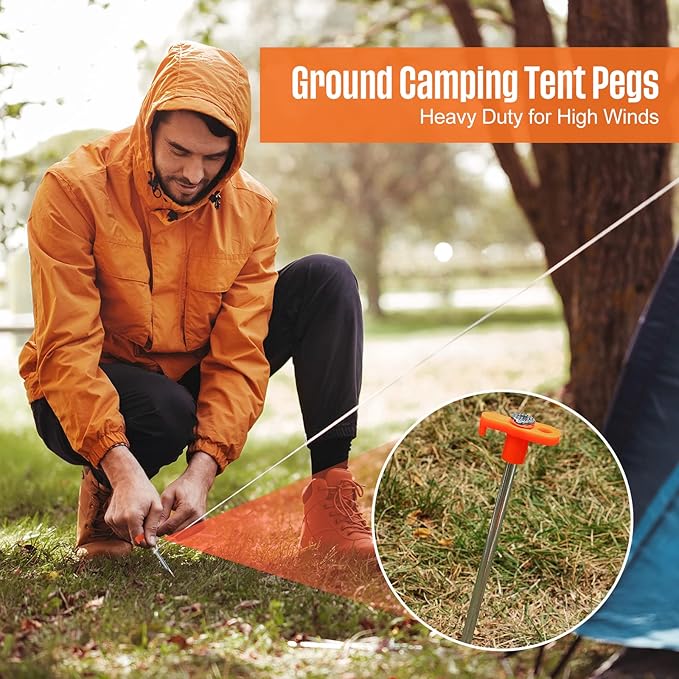 - Flat Head Design: these heavy duty tent stakes are designed with a flat head for easy access to the ground, providing tent stability for you, convenient and safe to use, bring you much convenience