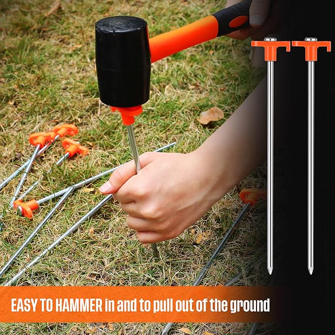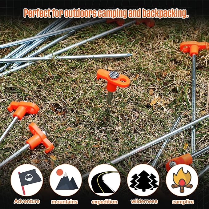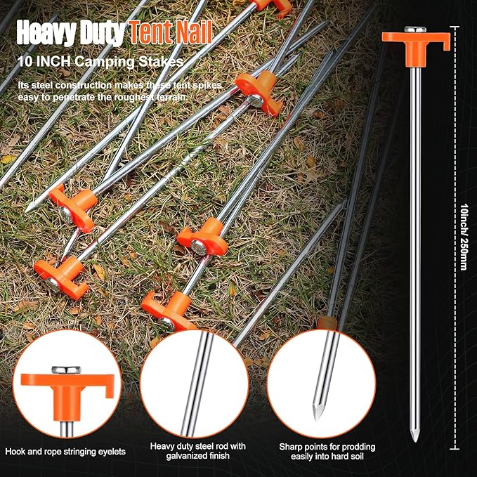 - Reliable and Rustproof: metal tent stakes are made of quality galvanized iron material, fade resistant and reliable, rustproof and sturdy, and its tops are made of plastic, not easy to deform or break, which can serve you for a long time