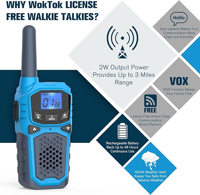 Walkie Talkies for Adults Rechargeable,Long Range Two Way Radios 22 Channels VOX NOAA Weather Alert Family Walkie-Talkie for Outdoor Adventures, Camping, Hiking, Hunting 2 Packs