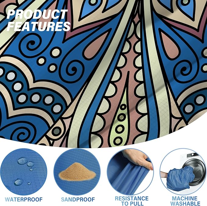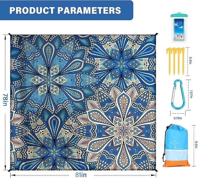 - Beach Mat Blanket Sandproof:You Just shake the blanket and it easily gets rid of all the sand once,Keep the Blanket clean at all times,Washed by washing machine or by hand.