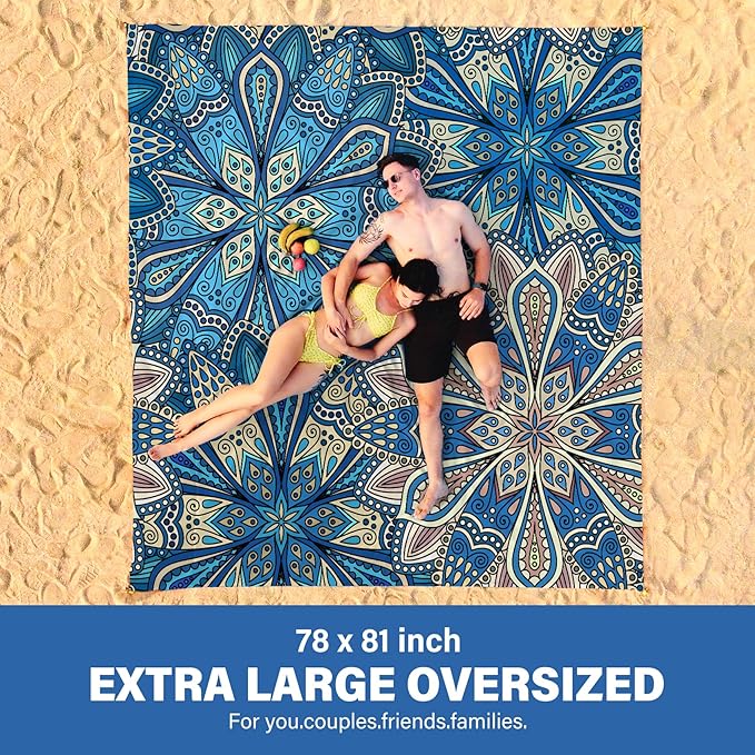 Beach Blanket Oversized Extra Large 78" X 81",Waterproof Sandproof Beach Blanket 1-7 Adults Lightweight Durable for Travel Camping Hiking Picnic