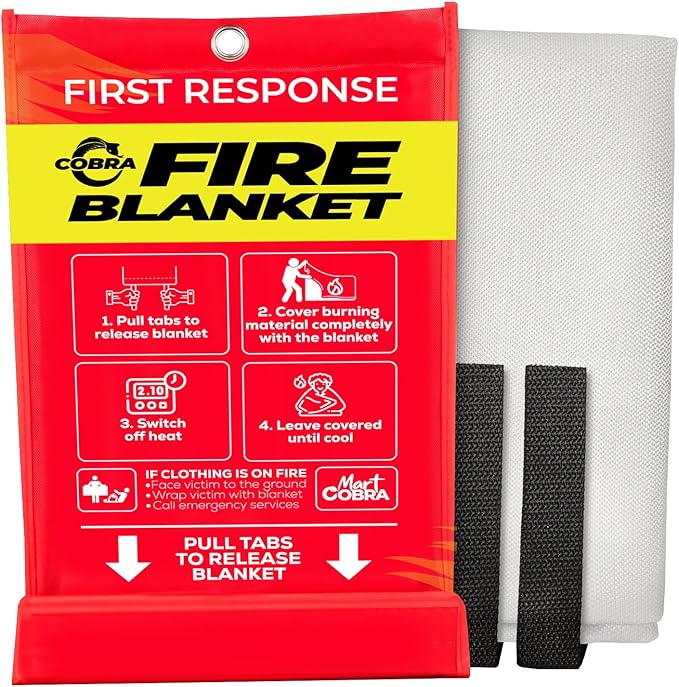- PREMIUM CERTIFIED QUALITY: Mart Cobra emergency fire blankets are made from high-grade 430+ GSM 100% fiberglass fabric. Our flame retardant blankets withstand temperatures up to 1076°F. Our fire blankets emergency for homes are CE and SGS certified