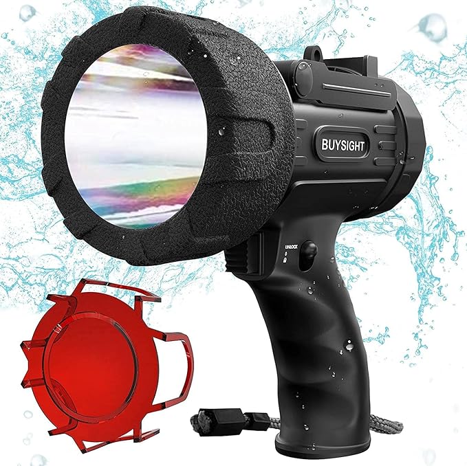 BUYSIGHT Rechargeable Spotlight Flashlight, Hand held Spotlight 200,000 lumens Waterproof Flashlight Hunting Lamp with red Filter(Black)