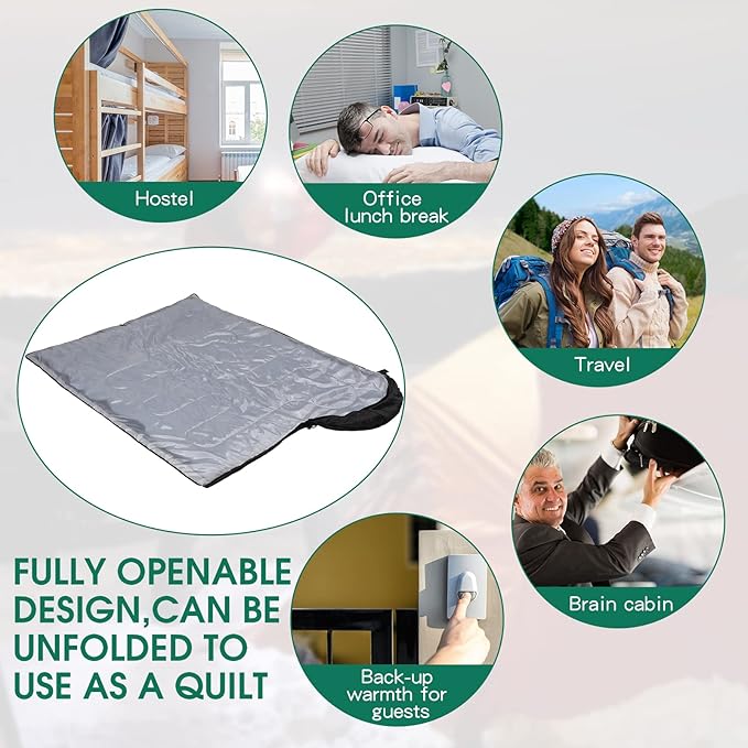 - Multiple Purpose: these compact sleeping bags are suitable for sleeping while camping, hiking, traveling, exploring, mountaineering, or you can unzip all zippers and use them as a comforter or blanket; You can also donate to the homeless and bring warmth to them