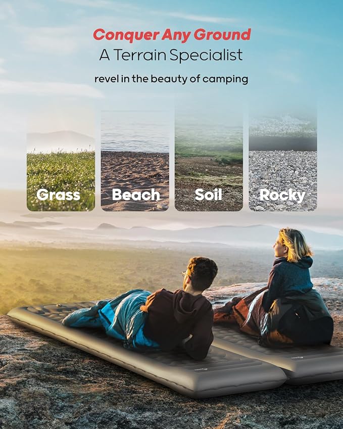 - Enhance Your Camping Sleeping Experience: The revolutionary inside design of this camping mat is intended to provide you with a cloud-like sleeping experience. Due to its improved internal structure, the inflatable pad can prevent the situation from contacting the ground even when supporting up to 800 pounds.