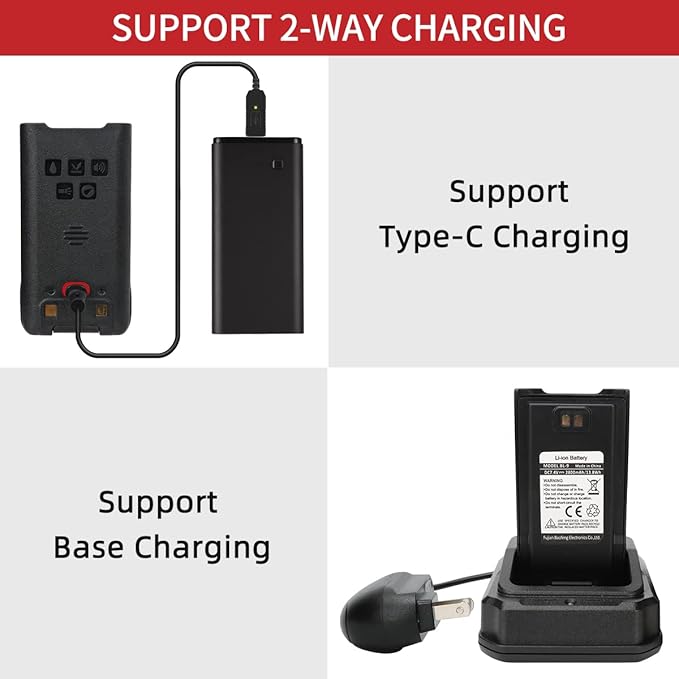 - More Features and 2-way Charging:Three modes High/Mid/Low power ,Dual Display and Dual Standby,U/V Cross Band Dual Watch 50 CTCSS and 104 DCS Codes;Original 2800mAh Li-ion Battery with Type-C Direct Charge Port,Support Type-C Charging and Desktop Charging.