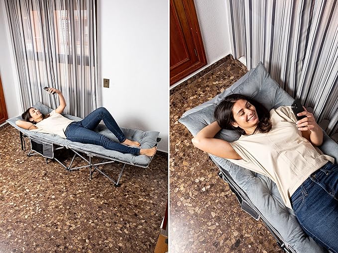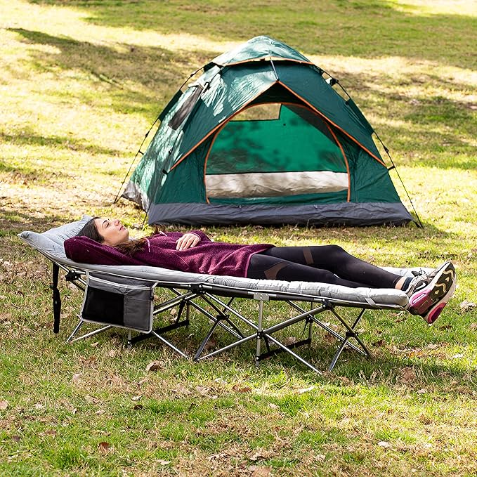 Zento Camping Cot and Mattress Folding Outdoor Travel Bed 2 Pack - Heavy Duty Max Load 450 LBS Premium Quality Cot Bed with Pad for Comfort Sleeping for Travel Home and Anytime Use