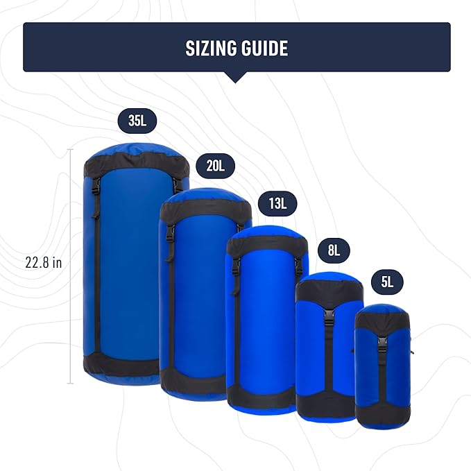 • Durable 8-liter compression stuff sack squishes down bulky items to one-third the original volume to maximize packing space in a backpack, suitcase, or duffle