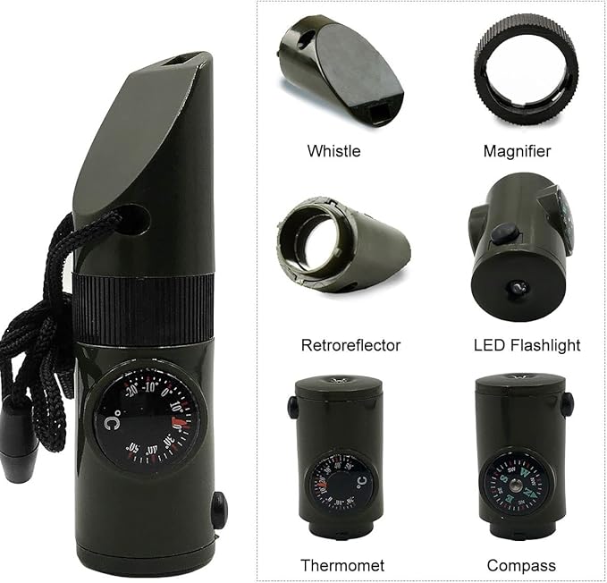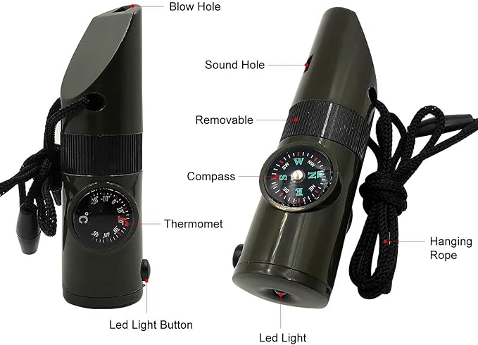 - Emergency WSuper Loud Survival Whistle: High-pitched powerful noiser with dual sound chambers that can provide up to 120 decibels of sound power, enough to be heard a mile away. Used as a signal whistle.histle