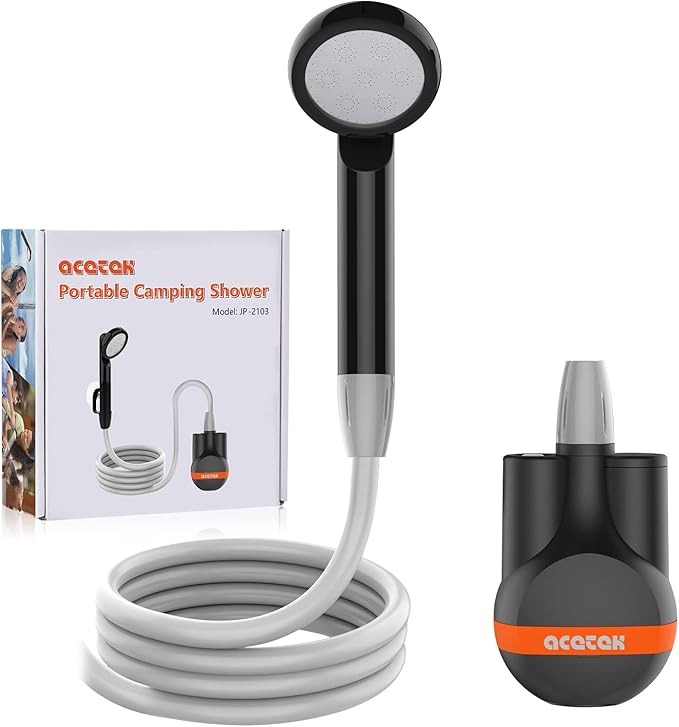 Portable Shower Camping Shower, Outdoor Camp Shower Pump Rechargeable Shower Battery Powered Handheld Shower Heads for Camping, Hiking, Beach Washing, Traveling, Pet Cleaning, Watering