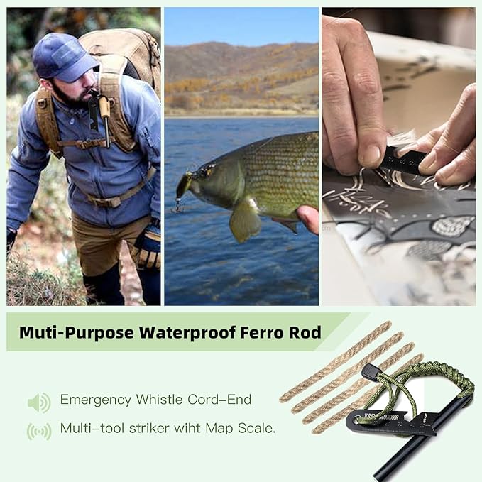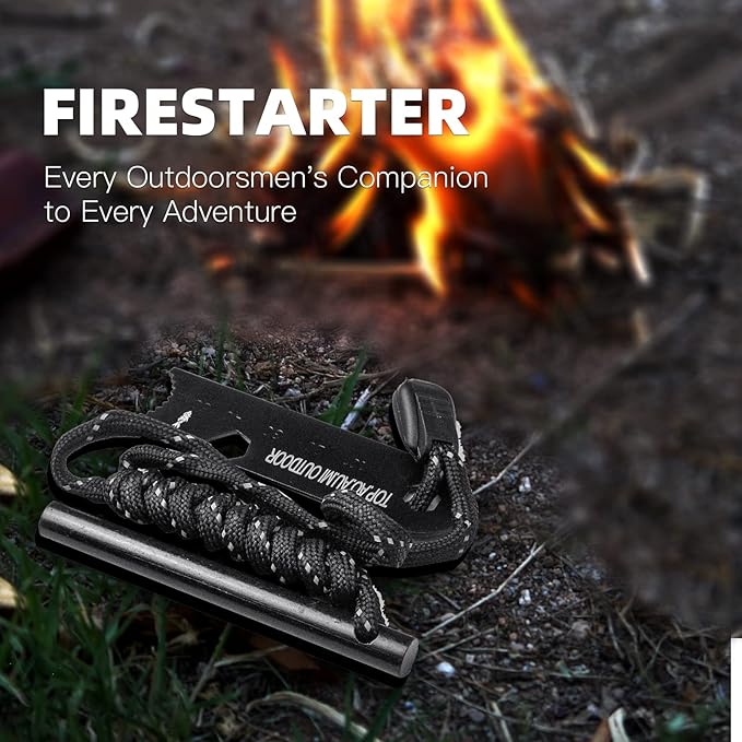 Fire Starter Survival Tool, Ferro Rod Fire Starter Kit & Backpacking Multitool, Fire Steel, Fire Rod