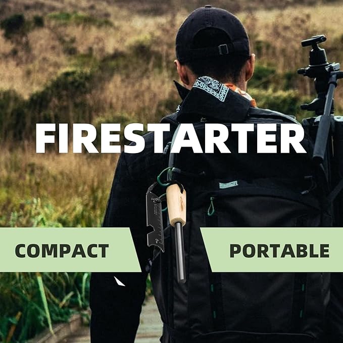 Fire Starter Survival Tool, Ferro Rod Fire Starter Kit & Backpacking Multitool, Fire Steel, Fire Rod