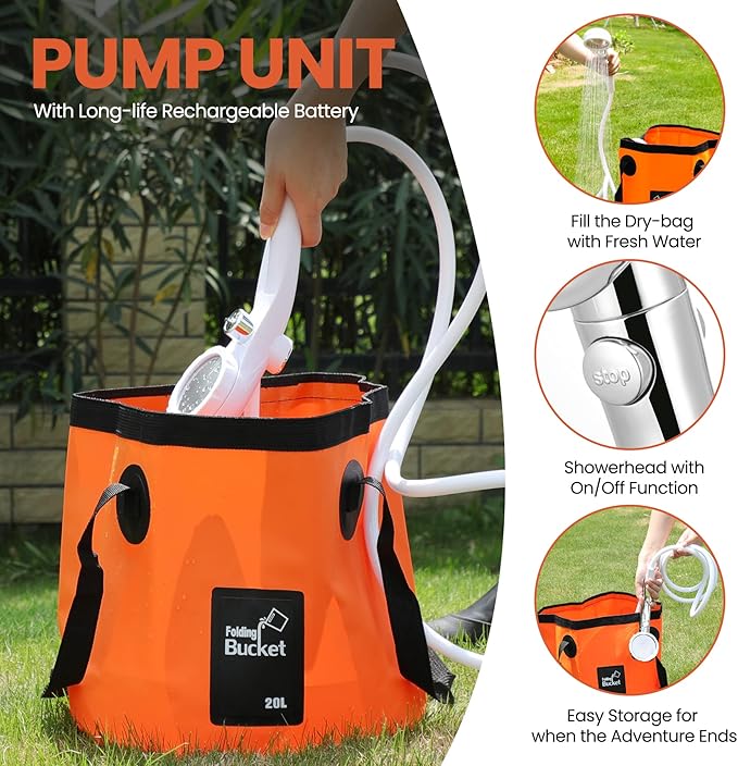 B013 Portable Camping Shower - Stay Clean and Refreshed Anywhere with Our Camp Shower, Camping Shower Bag, and Outdoor Camping Shower for Your Next Adventure (Orange)