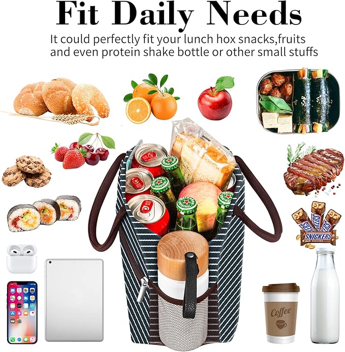 Coobiiya Lunch Bag Women, Lunch Box for Women Adult Men, Small Leakproof Cute Lunch Tote Large Capacity Reusable Insulated Cooler Lunch Container for Work/Office/Picnic/Travel-Stripe