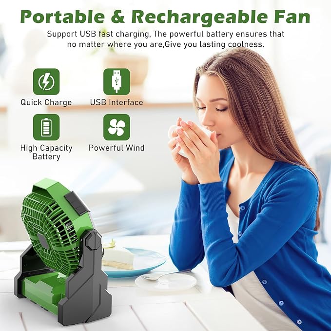 - [Sturdy and Anti-Shatter] The tent fan housing is made of strong and durable ABS material, which is anti-drop and anti-collision, so you can use it in various outdoor occasions with confidence. In addition, it is also suitable for indoor use as a portable desk fan.Summer is almost here, take advantage of it!