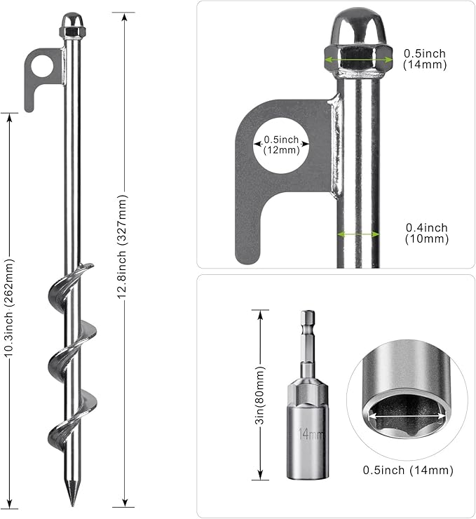 - 【Easy to Install and Remove】You can easily screw these spiral anchor into the ground with a drill and screw them out again when you don’t need them. You can install them in a few minutes, saving your time and effort.