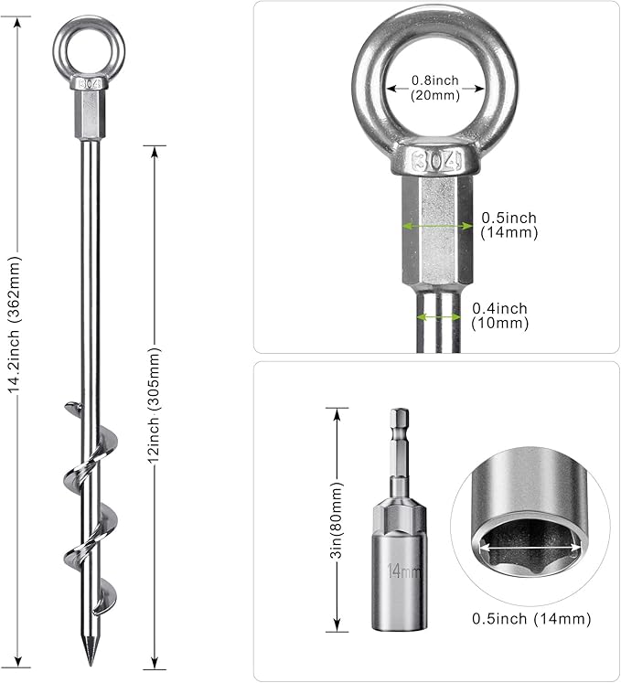 - 【Easy to Install and Remove】You can easily screw these spiral anchor into the ground with a drill and screw them out again when you don’t need them. You can install them in a few minutes, saving your time and effort.