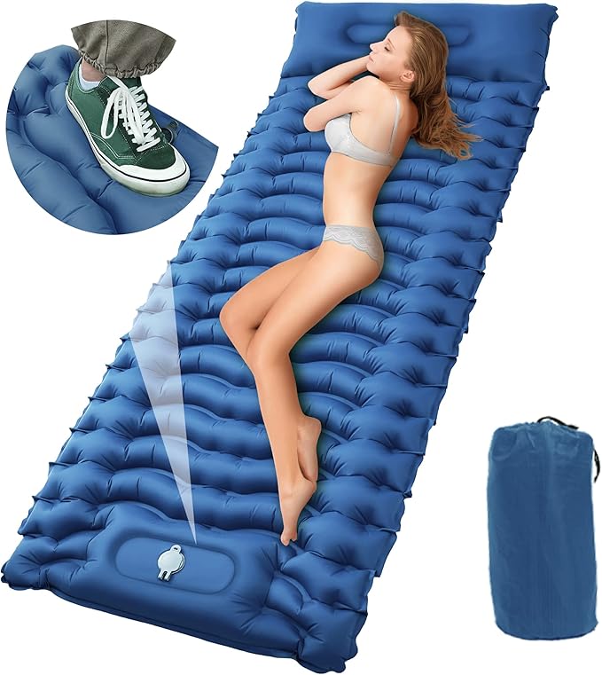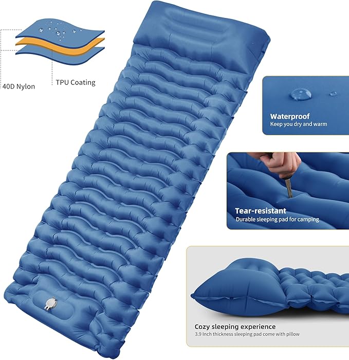 STURME Sleeping Pad for Camping, 3.9 Inch Extra-Thick Self-Inflating Camping Mattress with Foot Pump, Compact Air Mattress Ultralight Sleeping Mat with Pillow for Backpacking, Hiking, Outdoor -Blue