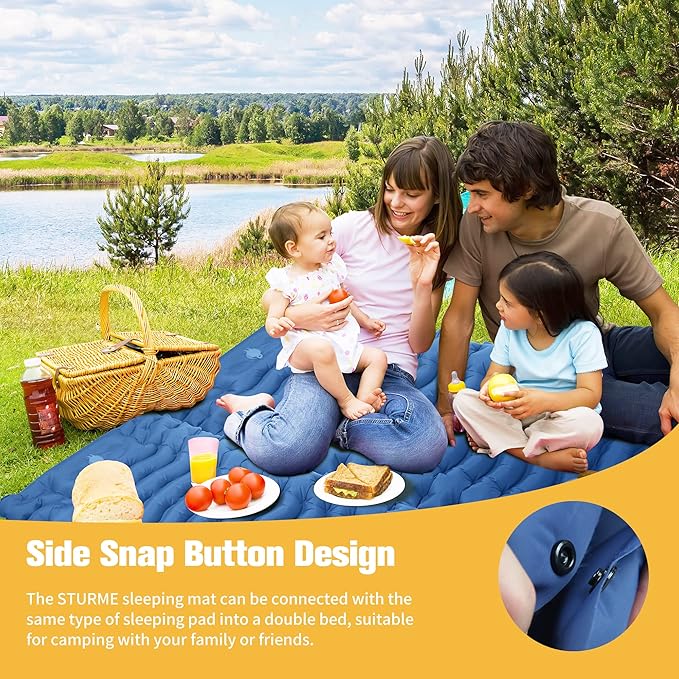 - Practical design for Double Bed: With a side snap button design, the sleeping pad can be connected into a double bed with the same type of sleeping pad, suitable for camping, hiking, backpacking and trekking with your best friend.