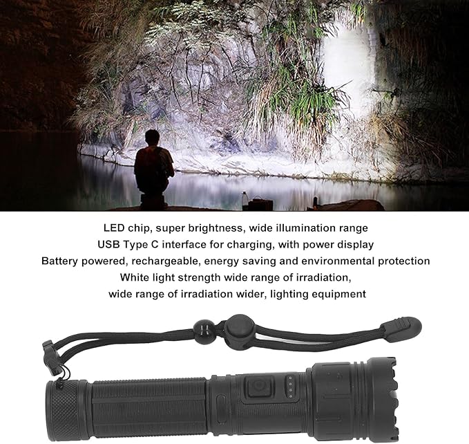 - ✔️【Type C Interface】: USB Type C interface charging, and equipped with a power display, powered by 1 18650 battery (not included), recyclable charging, energy saving and environmental protection.