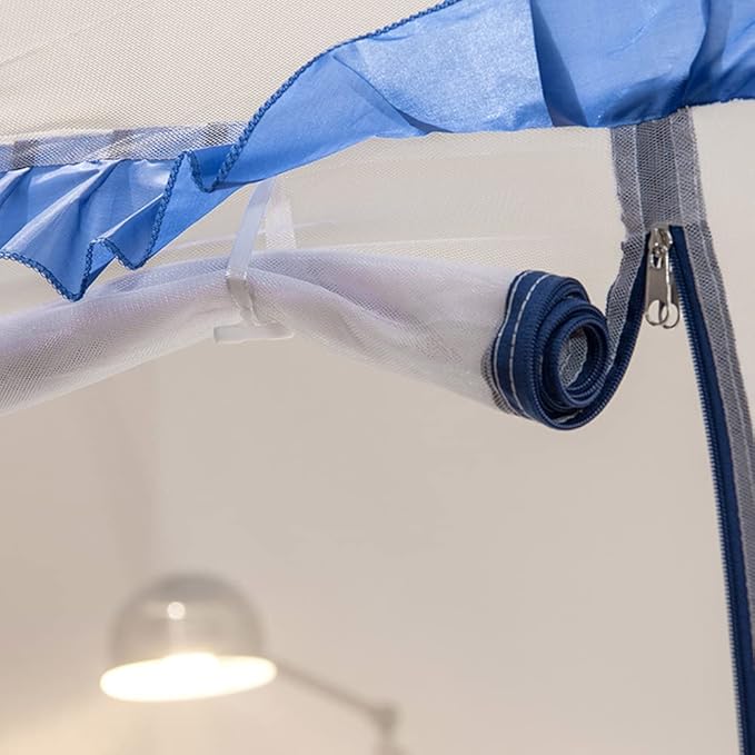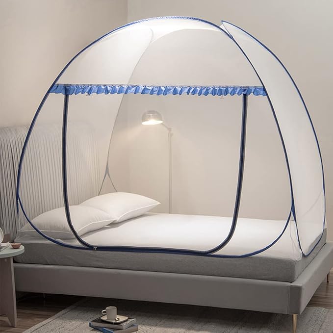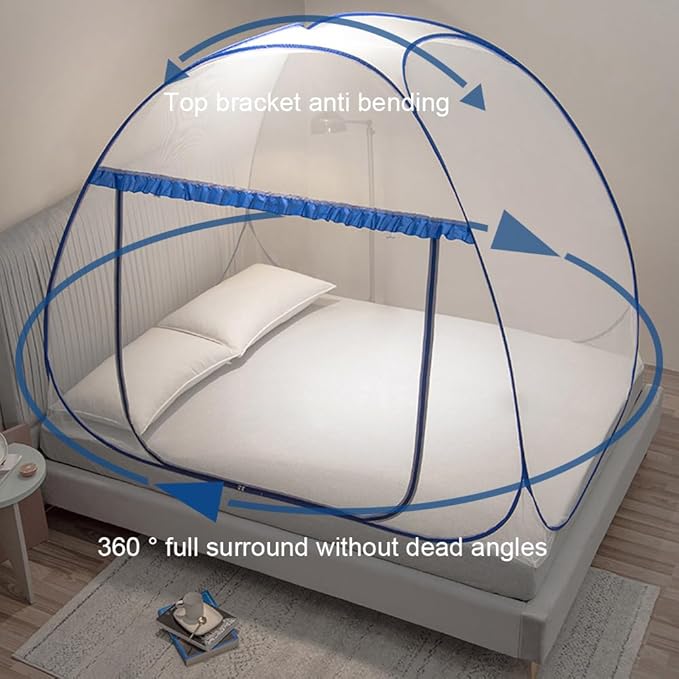 Mengersi Mosquito Net Tent for Bed,Pop-Up Bed Canopy with Net Bottom,Mosquito Netting Bed Tent for Kids Girls Boys,Bed,Suit for Indoor Outdoor (Full/Queen, Blue)