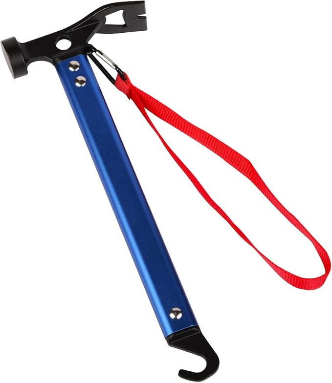 - 🔨Bright Colors Not Easy To Lose: The stake hammer comes in a bright blue design with a reflective cord, easy to find even when tossed onto the hidden weeds.