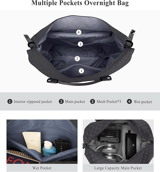 - Extra Points Weekender Bag: The travel bags for women come with a removable adjustable strap, you can carry it as shoulder bag,handbag or cross bag as you like.The weekender bags for women made of high quality tear resistant nylon fabric