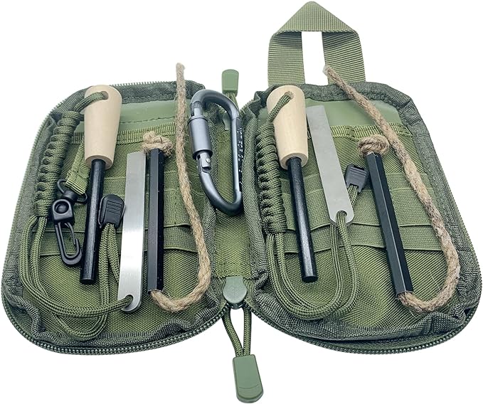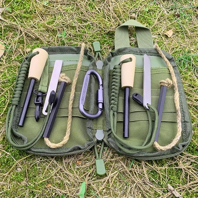 - EASY TO CARRY: You don't have to worry about losing these fire starter survival tools, because besides the fire steel and hemp tinder, you will also get a strong and durable multifunctional bag and a large aluminum alloy hook. You can put fire steel, hemp tinder or other tools you need into the bag.