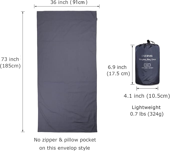 - This sleeping bag liner provide you with comfort when camping. It’s 75×36 inches,good for one person and keeping your sleeping bag clean.
