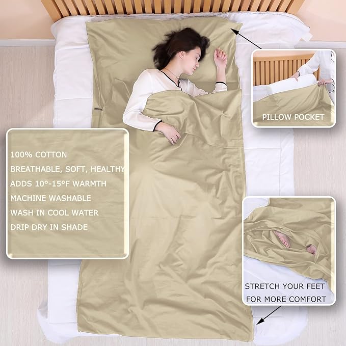- Bring this travel sheet with you whenever you travel because the bleach on some hotel sheets is too harsh. No matter where you travel to the world, no matter what season, this cotton sleeping bag will make you feel like sleeping on your own cotton sheets at home, cool, clean, comfortable and safe.